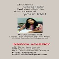 A dedicated and experienced Career Counselor and a teacher successfully running INNOVIA ACADEMY for the past 15 years Counselling and training students for college entrance preparations for Design, Architecture, BBA BBA@IIM indore, Hotel Management, Mass Communication ,SAT and IELTS. INNOVIA ACADEMY has been giving excellent results in the past The INNOVIANs have got admissions in the.most prestigious colleges of India and abroad like NID,NIFT , JJ College of Architecture, IIT Gauhati , IIM Indore, Christ University ,IHM Aurangabad, and many more. She also takes Personality Development Programs at various MBA colleges for job interviews Socially also, she is very active. Shes an organic gardener and grows all organic vegetables and fruits on the terrace garden. She is also a well travelled lady who has traveled extensively in India as well as 19 countries abroad . She is an avid reader and public speaker too.