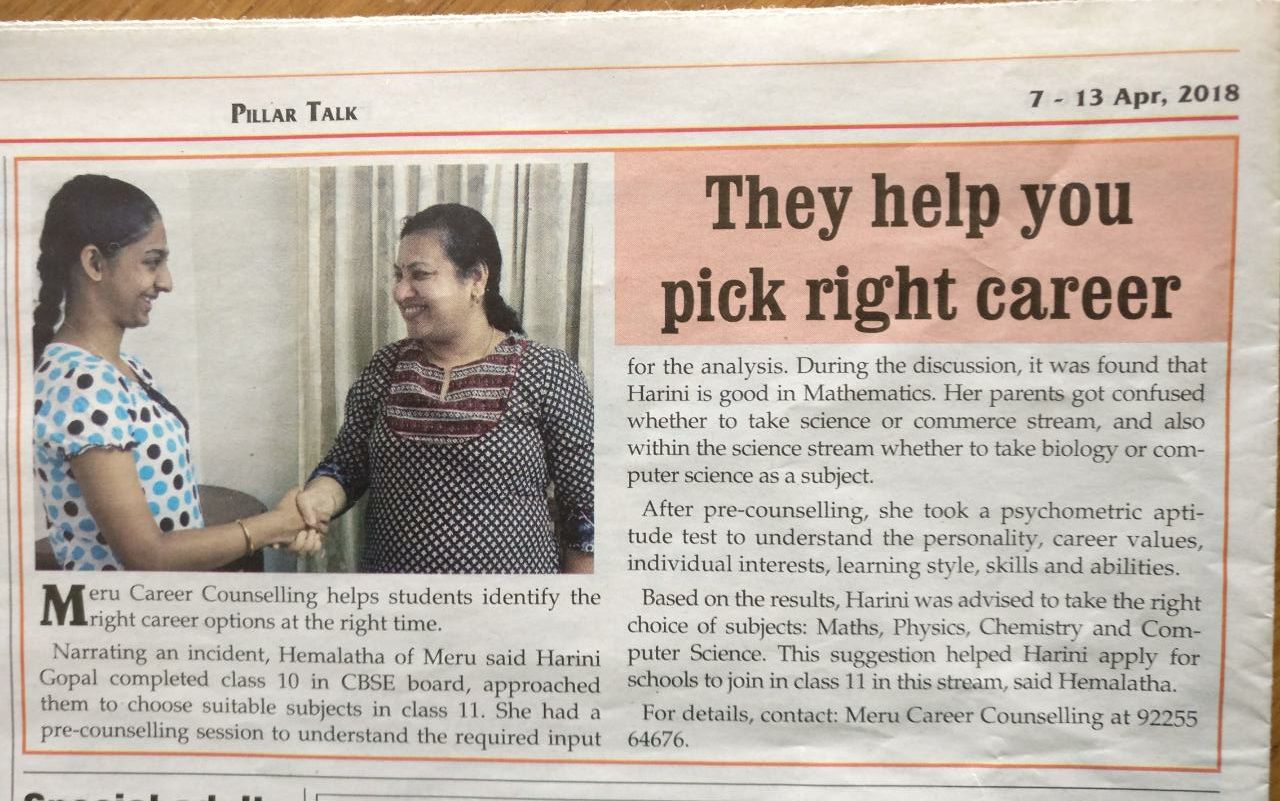 • She has helped numerous students, graduates and professionals for their right career choices not only in Chennai , but also from other parts of India , Dubai , Muscat , Singapore & California.